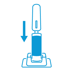 Introduce la paleta, con la almohadilla hacia abajo, dentro del tubo con solución reveladora, hasta que ésta toque el fondo.